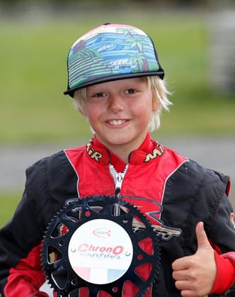 Naam: Jort Coone Leeftijd: 11 jaar Woonplaats: Lemmer | In de 4-takt had ik een trainer nodig, dus kwam ik bij Pierre en daar heb ik mee getraind en toen ik hoorde dat Pierre ook 2-takt doet ben ik naar Chrono gaan rijden, vandaar Redeker. | ||